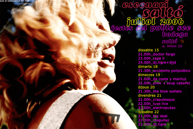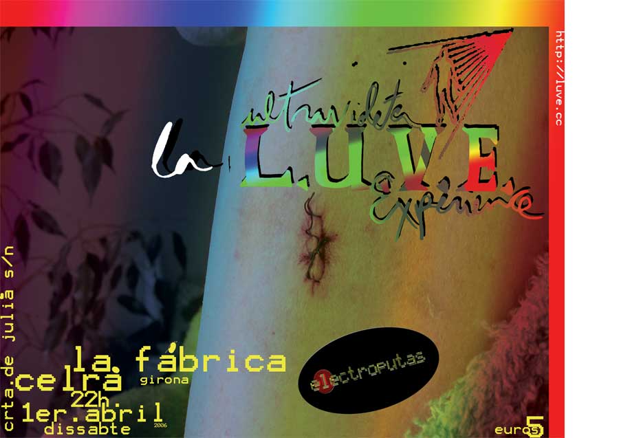 bcn 21 juliol, 2006 - luve @ festa major poble sec 2006 escenari bodega saltó | > bcn 29 juny, 2006 - presentació vídeoklip teletransporter men per danielillo - bodega saltó | > bcn 15, 16, 17 juny, 2006 - luve @ focoffsonar (libre/completo) | >